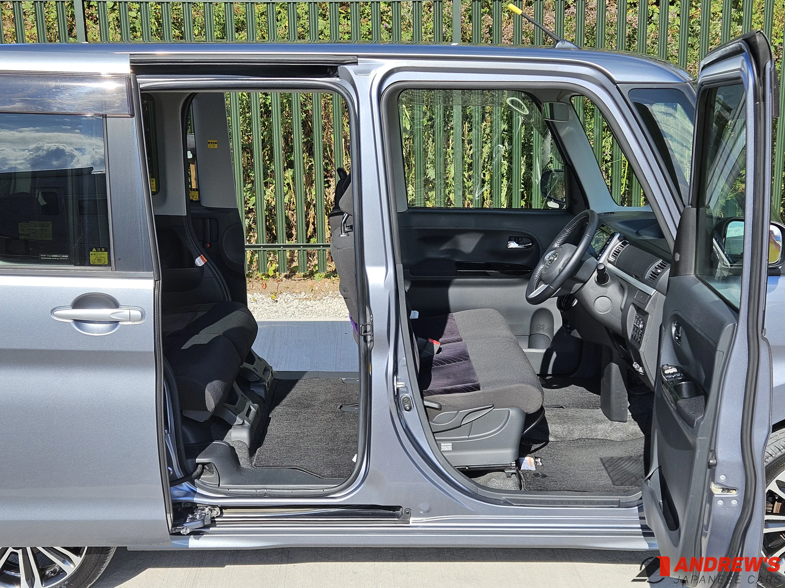 The Tanto is a stylish and practical vehicle in a compact footprint. The fantastic pillarless design on the passenger side is great for days out….and showing off! This one also has powered rear doors on both sides. The rear seats can slide fore and aft, for fine-tuning your boot space to rear passenger leg room ratio.