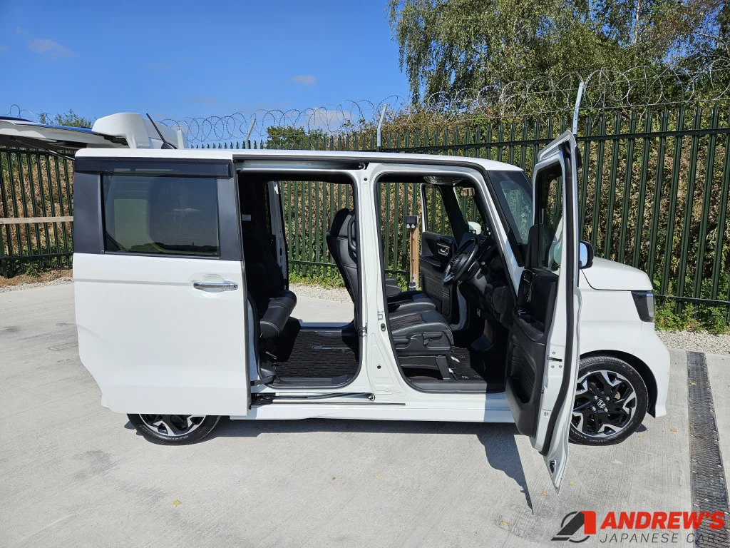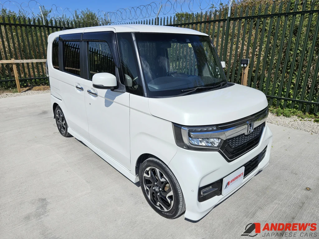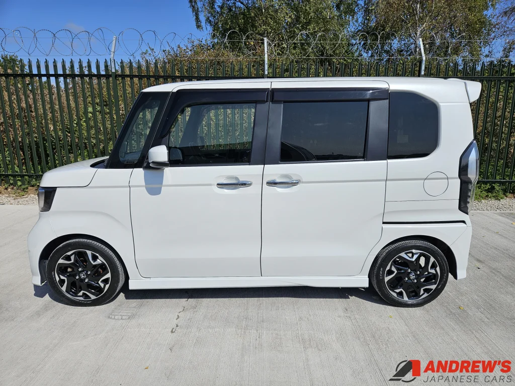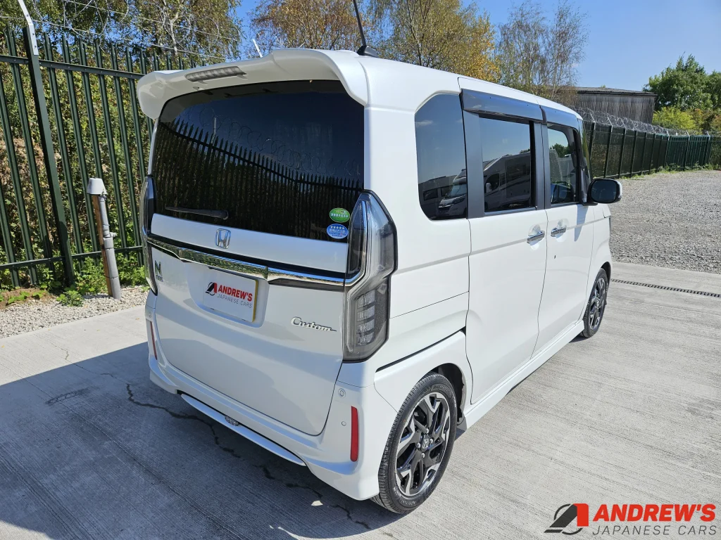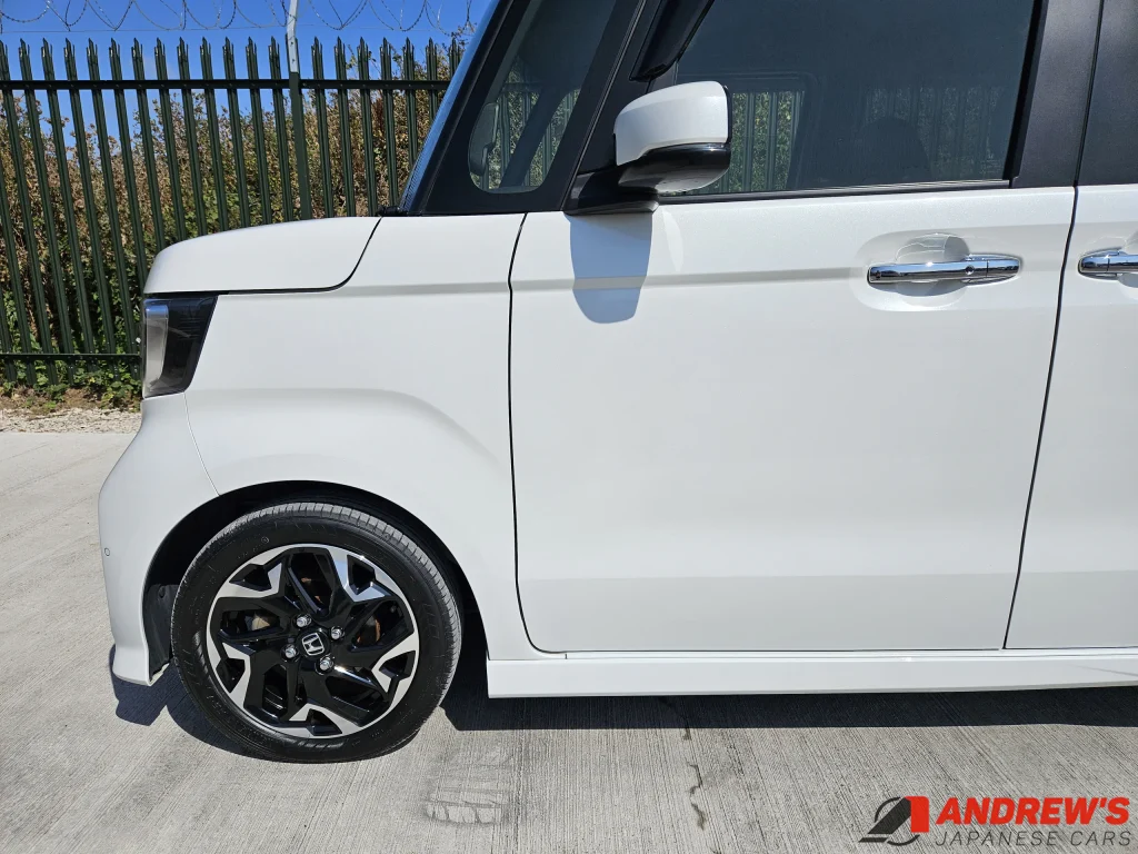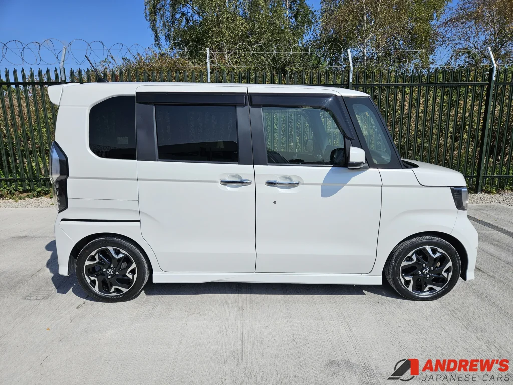 This is a beautiful example of the second generation Honda N Box custom turbo. It comes with Honda Sensing – a suite of safety-enhancing technology including collision avoidance and lane departure warnings.